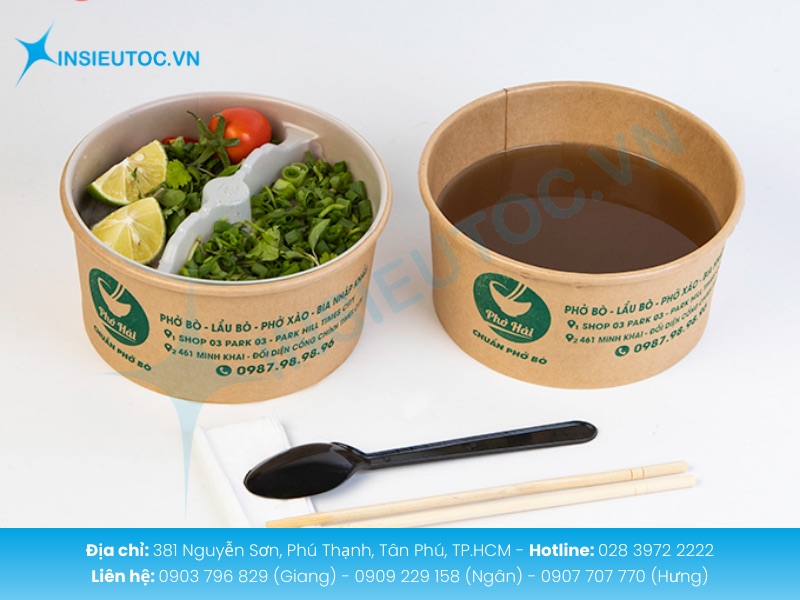 Hộp đựng thức ăn nước là giải pháp tối ưu cho các món bún, phở hay canh soup nhờ được trang bị lớp phủ PE hoặc PE liên kết chống thấm dày dặn. Sản phẩm này thường có dung tích linh hoạt từ 500ml đến 1000ml, kết hợp cùng thiết kế nắp đậy kín hoặc hàn miệng chắc chắn giúp đảm bảo nước dùng hoàn toàn không bị rò rỉ ra ngoài trong quá trình vận chuyển.