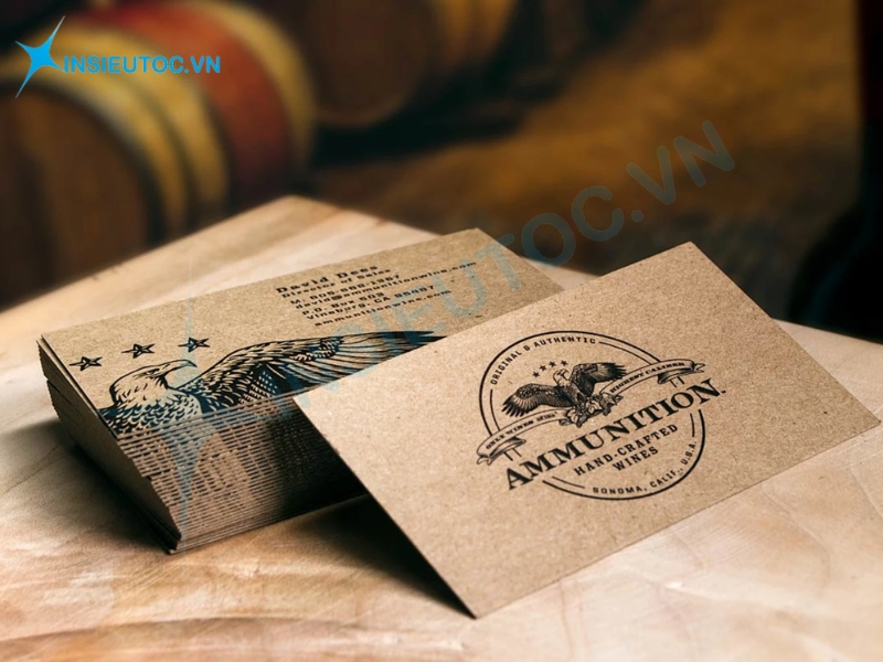 - Giấy Mỹ Thuật: Là dòng giấy được ưu tiên lựa chọn khi khách hàng có nhu cầu in name card cao cấp, cần sự sang trọng và tinh tế. Đặc điểm của giấy là bề mặt có các đường gân, thớ sần hoặc ánh nhũ tự nhiên tùy mã giấy. Do chất giấy có độ hút mực cao, màu sắc in ra sẽ trầm và sâu hơn so với giấy Couche. Loại này thường không cán màng để giữ nguyên độ sần tự nhiên của giấy, rất phù hợp với các thiết kế đơn giản, ít màu sắc.